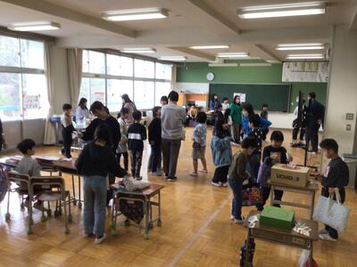 手作りのアクセサリーを売ったり、紙相撲で遊んだり、大盛況でした。