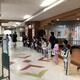 今朝の昇降口では、1年1組の皆さんが「あいさつ運動」を行ってくれました。