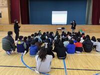 福祉の学習をしている第3学年児童に、目の不自由な方々がどのように生活しているか、どのような思いでいるのか等について教えていただきました。