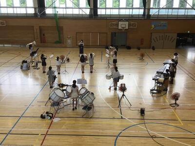 厳しい暑さの日が続いていますね。そんな中,あけの平小学校の金管バンドの子供たちは,練習に励んでいます。
