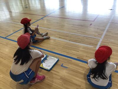 新体力テストの「20mシャトルラン(往復持久走)」を1年生と6年生で実施しました。一定の間隔で鳴る電子音に合わせて20m先の線に向かって走り,足が線を越えるか ,触れたら,その場で向きを変え,20m先の線に向かって走ることを繰り返します。感染症対策と熱中症対策をしっかり行って,6年生のお兄さん,お姉さんにサポートしてもらいながら,1年生も,一生懸命頑張りました!