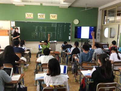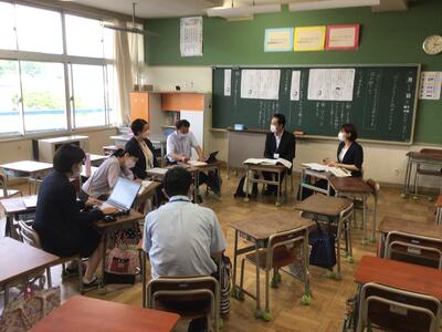 今日の授業作りのために、事前に先生方がチームとなって、授業をどんな風に進めたら良いか、効果的な手立てはなんだろうか、タブレットをどのように活用したら良いかなどの話合いを繰り返しました。